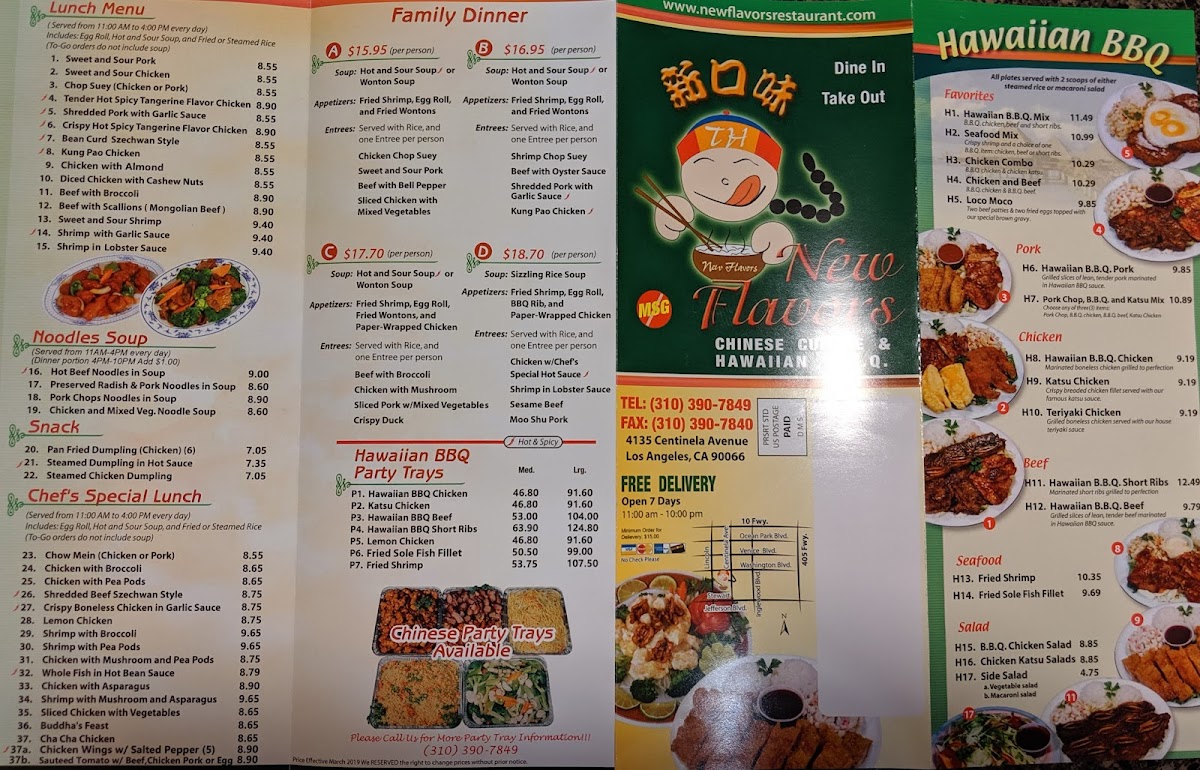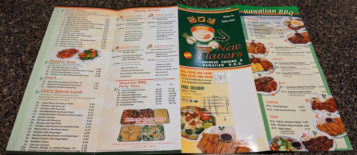 Welcome to New Flavors, a hidden gem in Los Angeles that seamlessly blends Chinese cuisine with Hawaiian BBQ. Nestled at 4135 S Centinela Ave, this culinary treasure offers an extensive menu that delights the senses. From the crispy and savory Fried Shrimp to the tender Hawaiian BBQ Pork, each dish is crafted with care and passion.